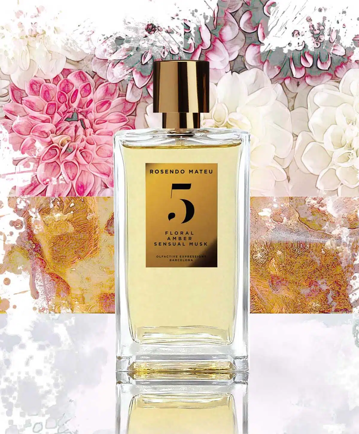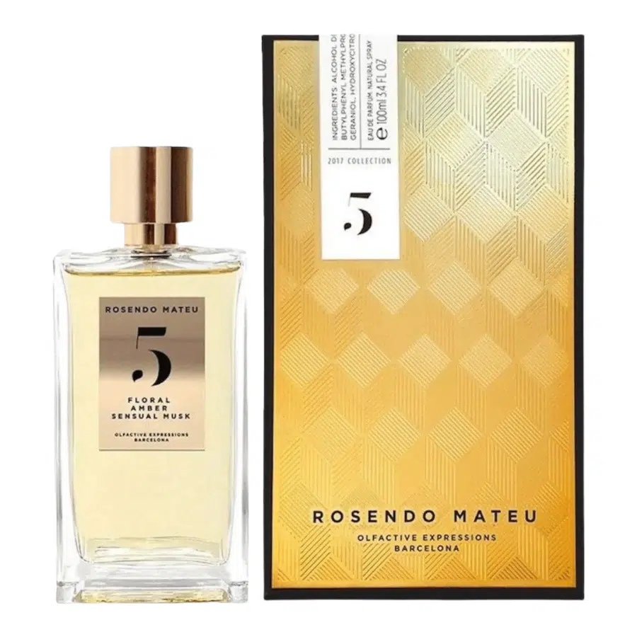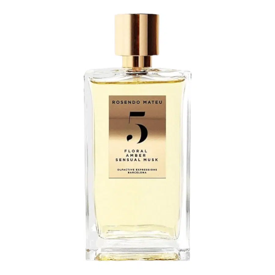 The First Collection, donde cada creación se declina en torno a tres ingredientes principales sublimados: No. 5, un homenaje a las flores, el ámbar y la sensualidad del almizcle. Un símbolo de extrema alegría y pureza, el lirio de los valles está en el corazón de esta creación, que se mezcla con notas especiadas de azafrán y almizcle ámbar de estilo oriental para crear una fragancia poderosa y seductora. El conjunto sobre un fondo goloso donde se combinan vainilla, haba tonka y sorprendentes notas de fresas. Una rara combinación que hace del No. 5 un sueño en una botella, una quimera.