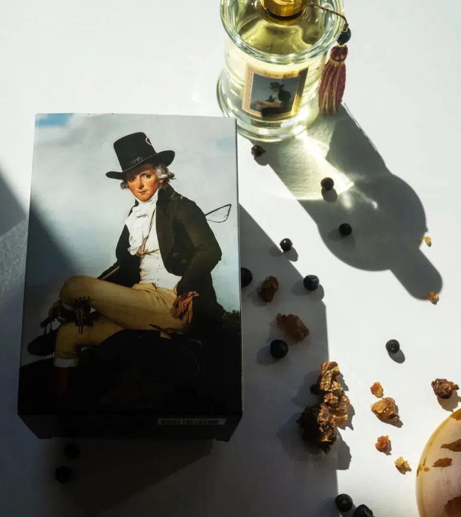 Eau de Parfum (amaderado, especiado). La interpretación de Irene Farmachidi del hermoso retrato del elegante Sr. Sériziat es una proeza de sensibilidad y refinamiento: captura la elegancia casi «dandy» del modelo, mientras que el oro es más profundo que las apariencias para tocar su alma.